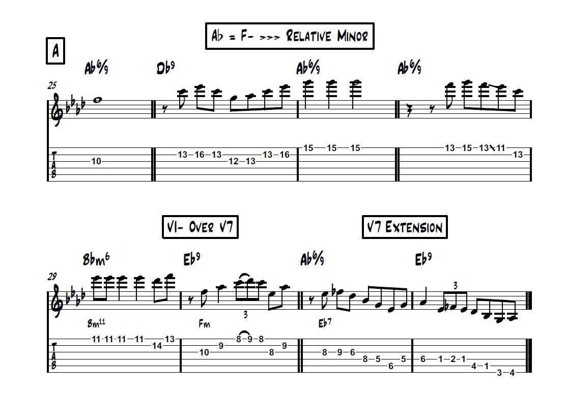 ALL LICKS ARE IDENTIFIED, OUTLINED AND ANALYSED THROUGHOUT THE MUSIC SHEET.